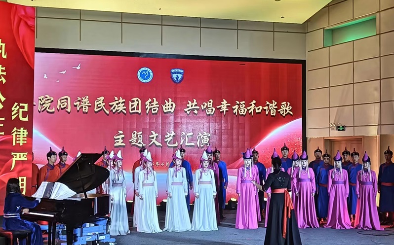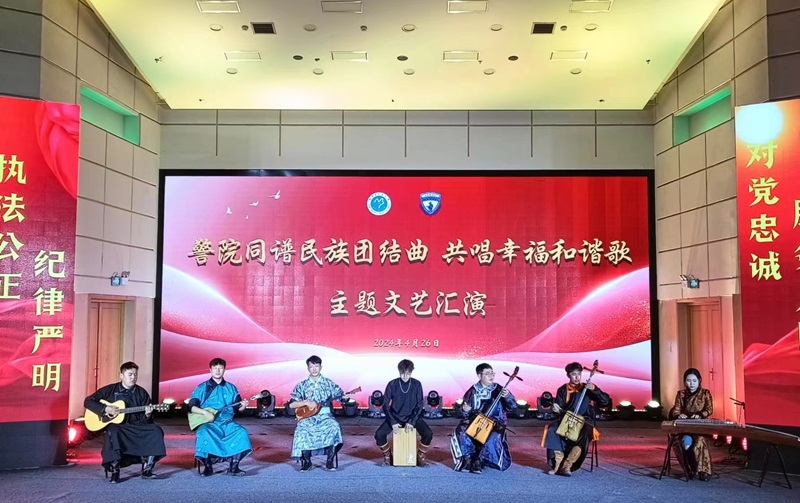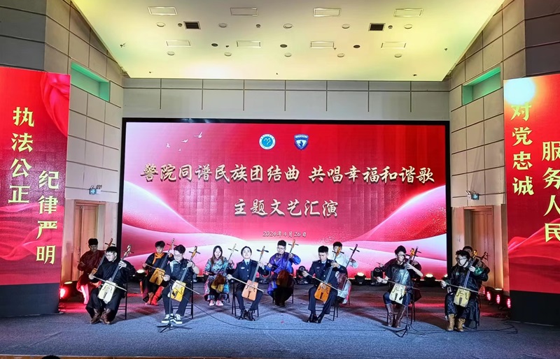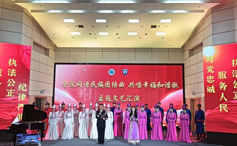 文艺汇演在热烈的氛围中拉开帷幕,内蒙古民族大学乌兰牧骑带来的合唱《梦中的额吉》《欢乐的那达慕》展现了浓郁的民族风情;歌曲《江山》则由通辽市科左中旗公安乌兰牧骑精彩演绎。舞蹈《走在光里的人》、歌曲《召日乌戈》《骏马》等节目展现了内蒙古民族大学乌兰牧骑的精湛技艺;通辽市科左中旗公安乌兰牧骑的朗诵《建功达尔罕》、马头琴演奏《达那巴垃》等节目也赢得了观众的阵阵掌声。最后,双方共同表演的马头琴齐奏《万马奔腾》将汇演推向高潮。