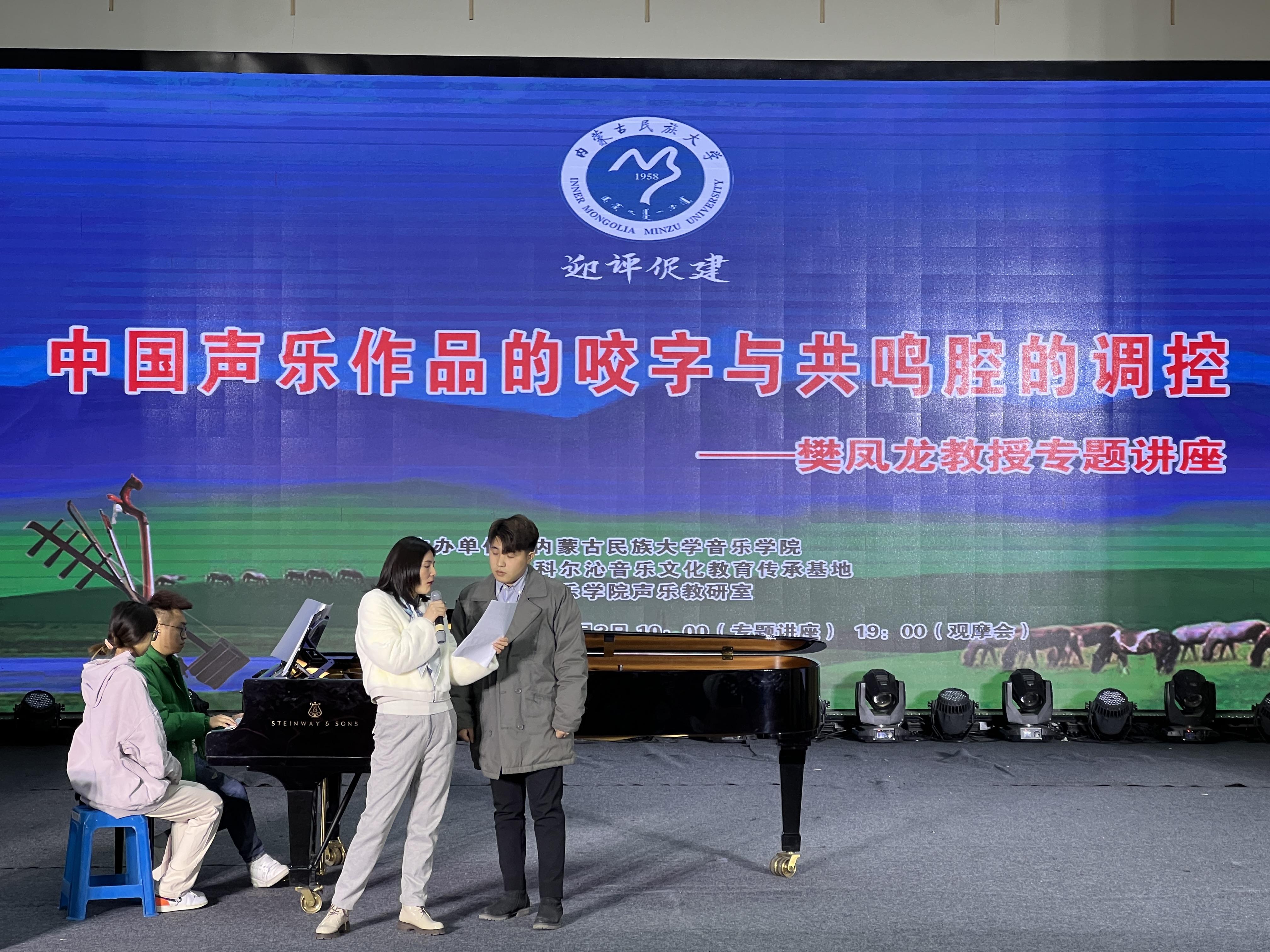 声乐是以艺术化的嗓音,语言化的旋律,塑造声腔与语言高度结合的听觉审美现象。为了提升声乐爱好者的综合素养,培养更多艺术人才,音乐学院于2023年11月3日上午在逸夫楼音乐厅举办“中国声乐作品的咬字与共鸣腔的调控”樊凤龙教授专题讲座。