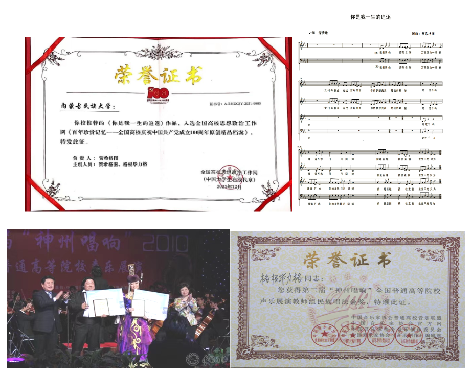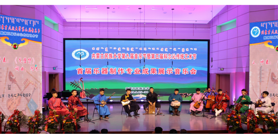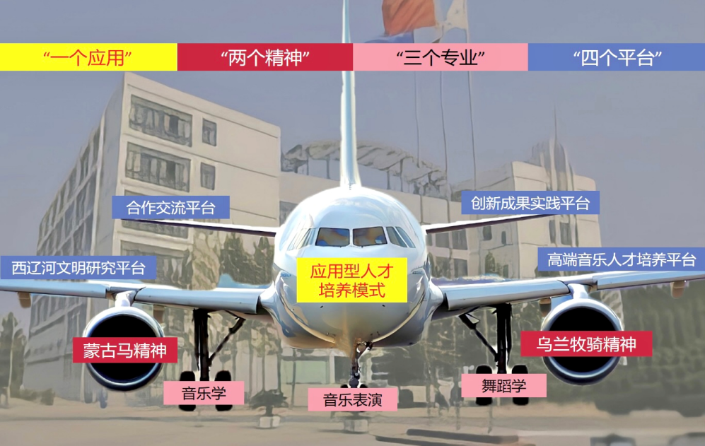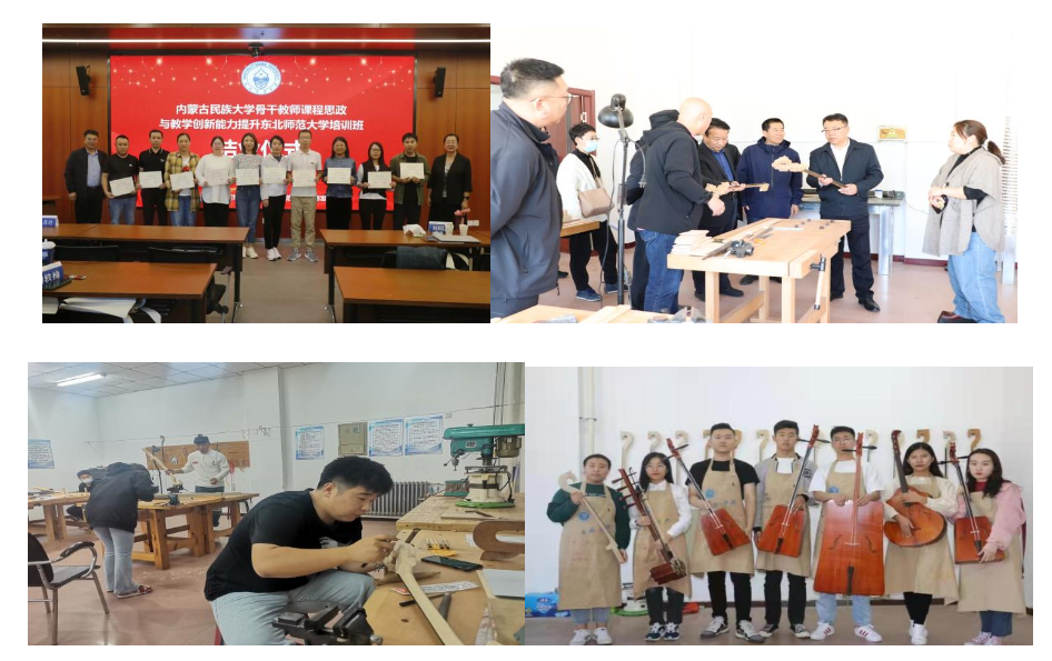 音乐学院以铸牢中华民族共同体意识为顶层设计,多维创新打造北疆文化品牌。搭建西辽河文明研究平台、高端音乐人才培养平台、合作交流平台、创新成果实践平台,协同创新,共建“科尔沁音乐文化研究中心”,“中华优秀传统文化基地——科尔沁音乐文化教育传承基地”、“科尔沁民歌基地”,充分发挥学科专业优势,促进地方文化产业发展,打造特色传统乐器制作方向,逐步形成“产 学 研 用”一体化创新发展模式;夯实“冀察热辽鲁艺音乐教育模式传承与创新团队”、“西辽河流域音乐文化研究团队”建设,传承鲁艺精神,深挖本地区红色音乐资源,加强红色教育,铸就红色基因。