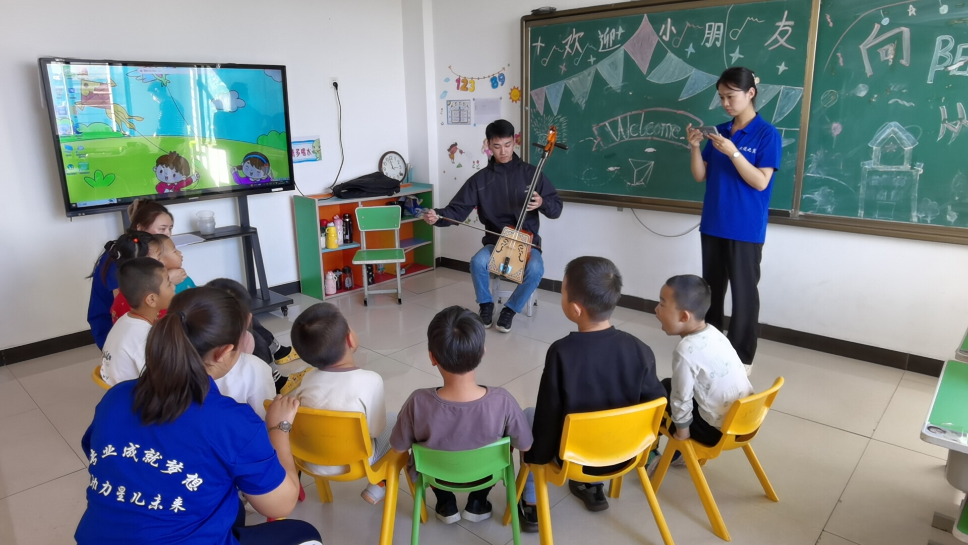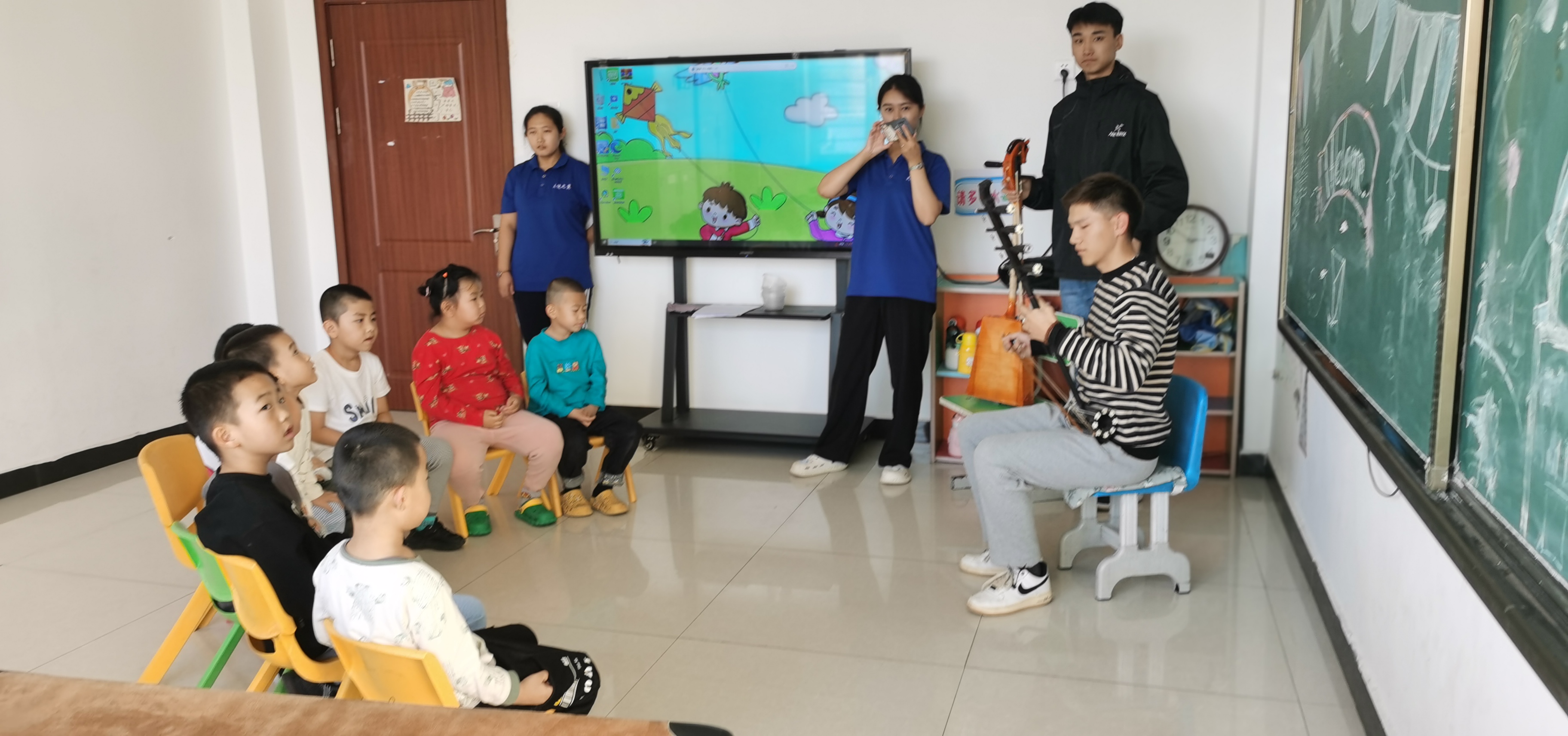 2023年10月27日下午音乐学院教工第二党支部开展“感党恩、听党话、跟党走”走进特殊教育学校主题活动。活动中孩子们在听到马头琴、四胡、长号的演奏后,一开始有些不安,逐渐进入了欣赏音乐的状态,不同的乐器所带来的美好带领他们走进了美妙的音乐世界里,音乐起到放松自我、愉悦身心的作用。音乐学院教工第二党支部将继续发挥自身优势,加深与社会各界联系,将音乐的美好带给更多有需要的人们。