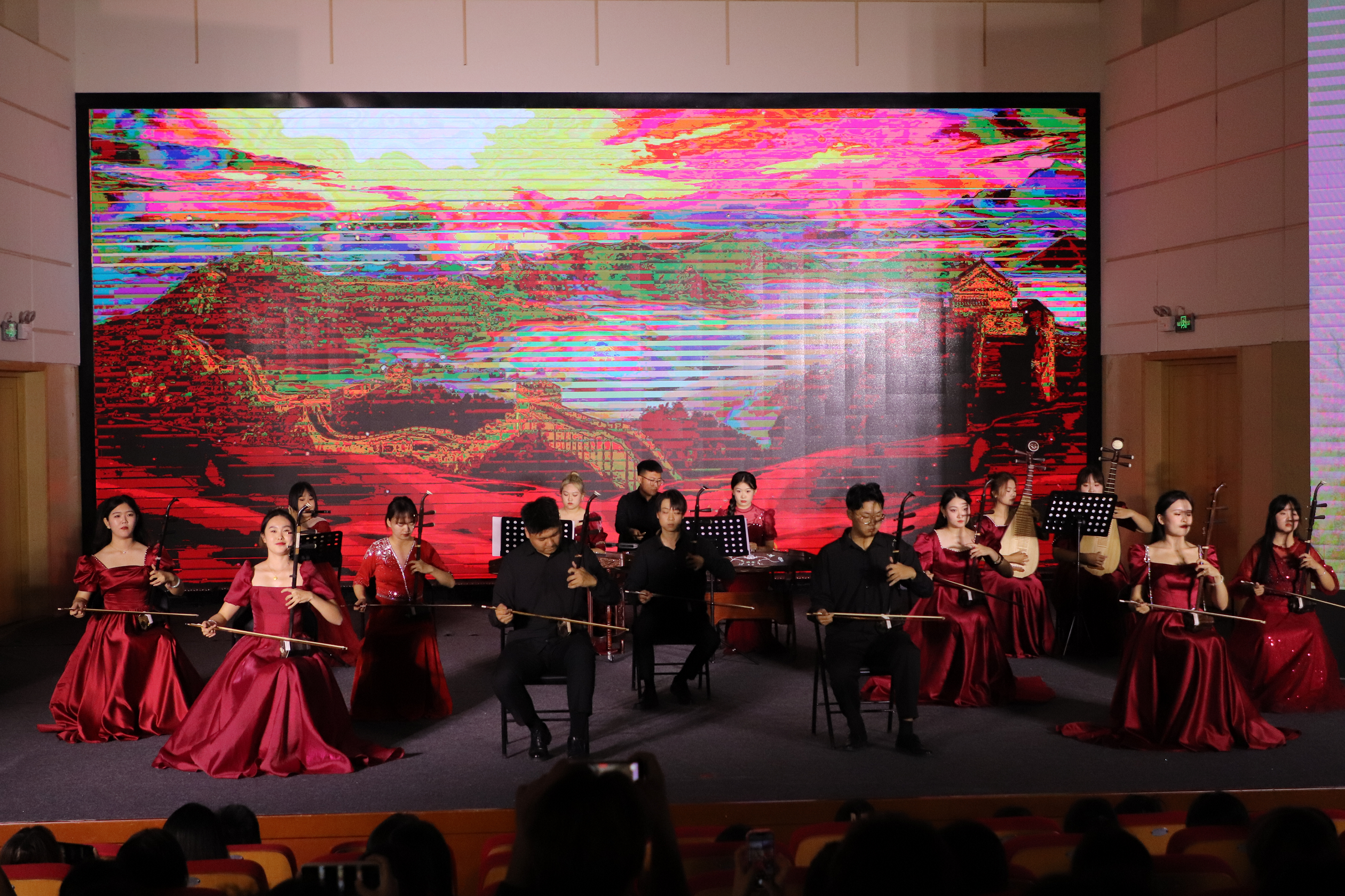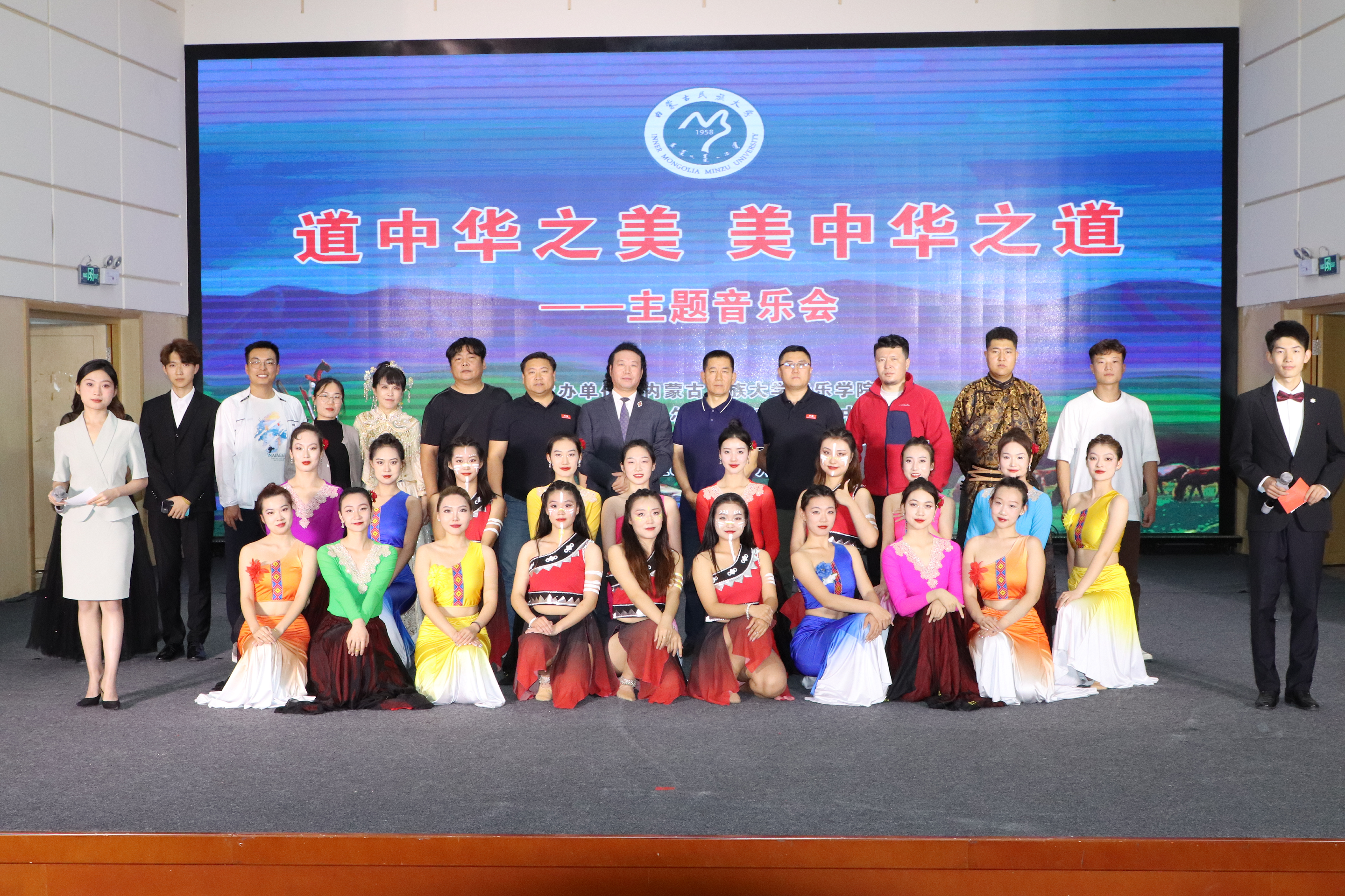 为了全面宣传贯彻落实党的二十大精神,增强中华文化传播力、影响力,坚守中华文化立场,提炼展示中华文明的精神标识和文化精髓,加快构建中国话语和中国叙事体系,讲好中国故事、传播中国声音,展现可信、可爱、可敬的中国形象。大力宣扬“蒙古马精神”,丰富大学生的校园文化生活,喜迎 “中秋节”、“国庆节”,营造民族团结,青春奋进的氛围,内蒙古民族大音乐学院于9月27日晚举办“道中华之美,美中华之道”主题音乐会。音乐学院副院长(主持工作)耿学刚、副院长敖日格乐和400余名学生观看音乐会。