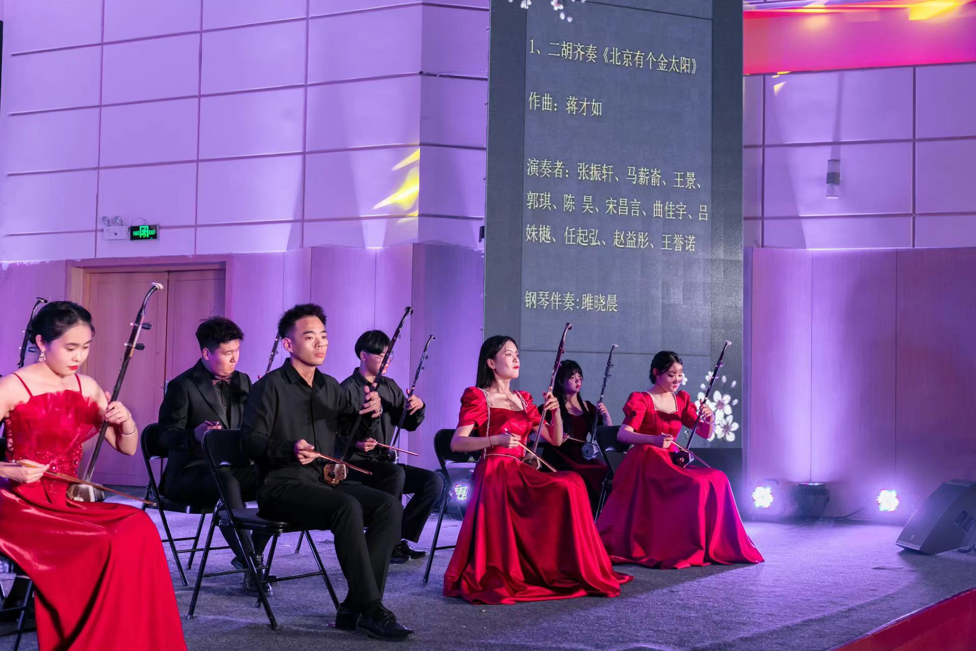 本次音乐会节目形式多样,以独奏、重奏、齐奏、合奏等形式,充分展现了各年级学生的专业水平。音乐会以《北京有个金太阳》《权利的游戏》为开场演出,展现了二胡与竹笛的独特音色魅力。随后一首二胡独奏曲《三门峡畅想曲》,带领现场观众领略三门峡水库的风采。歌颂九儿英勇无畏、视死如归精神的竹笛曲《红高粱叙事曲》、二胡齐奏《战马奔腾》《奔驰在千里草原》、二胡独奏《红梅随想曲》、竹笛独奏《蝴蝶梦》第一乐章【梦蝶】《燕归来》、竹笛三重奏《春到湘江》《枣园春色》、竹笛四重奏《喜相逢》依次上演。其中竹笛曲《红高粱叙事曲》《春到湘江》《枣园春色》是由张艺凡老师改编三重奏的形式全新演绎,受到了一致好评。最后音乐会以民乐合奏《光明行》圆满落下帷幕。