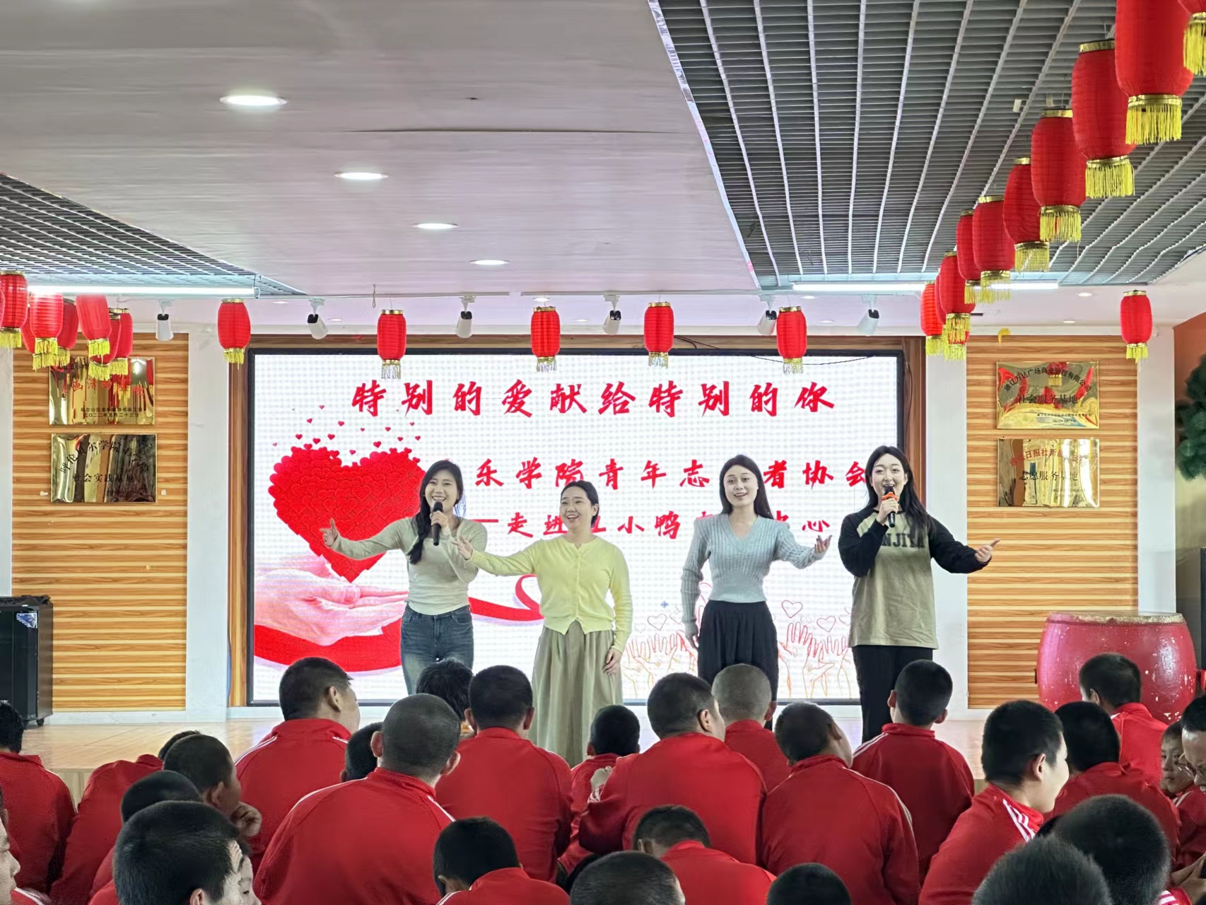 内蒙古民族大学音乐学院青年志愿者协会于2023年10月14日赴通辽市丑小鸭特殊教育学校组织开展关爱特殊儿童志愿服务活动。音乐学院青协工作人员组织50余名志愿者参加活动。