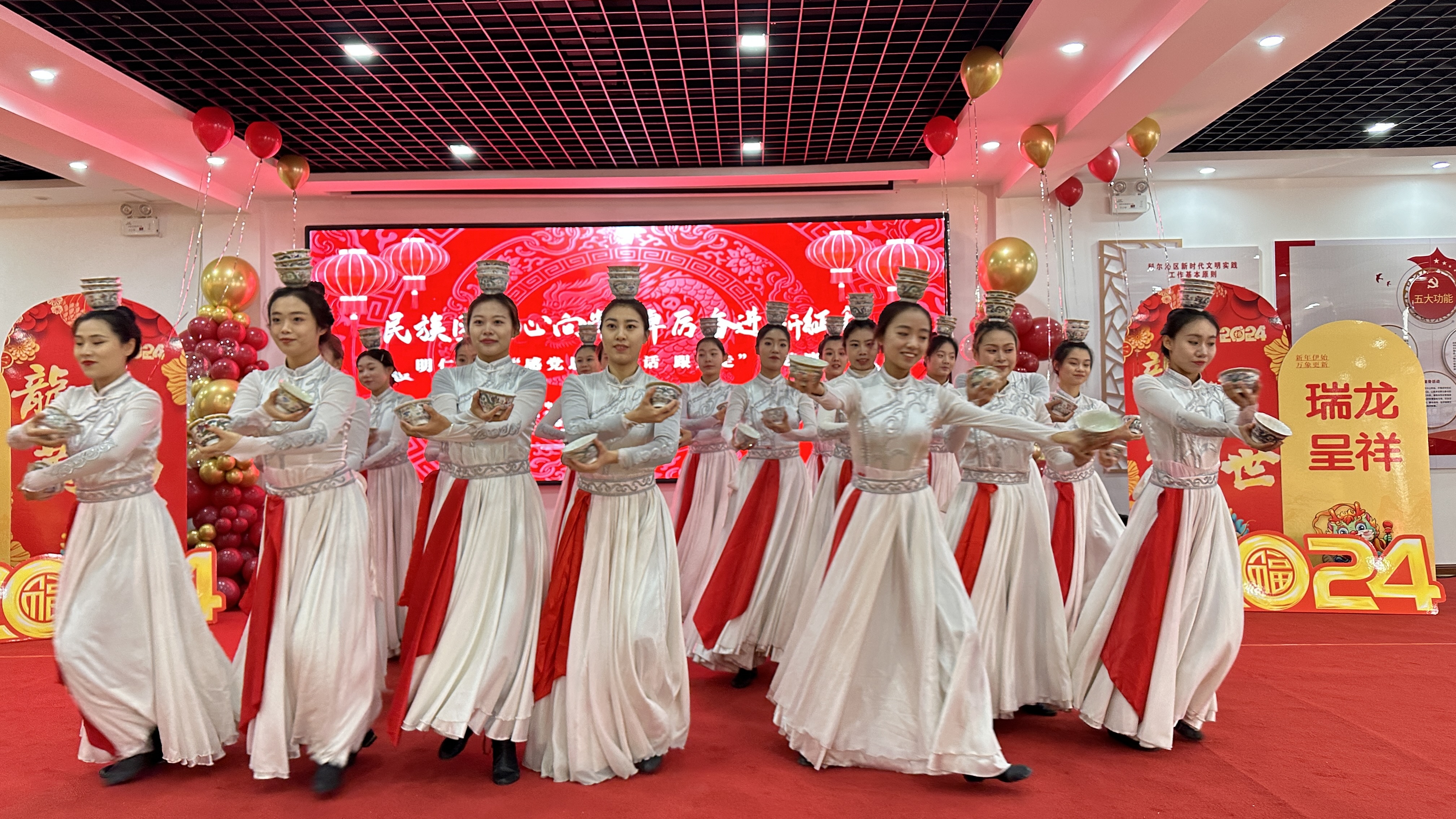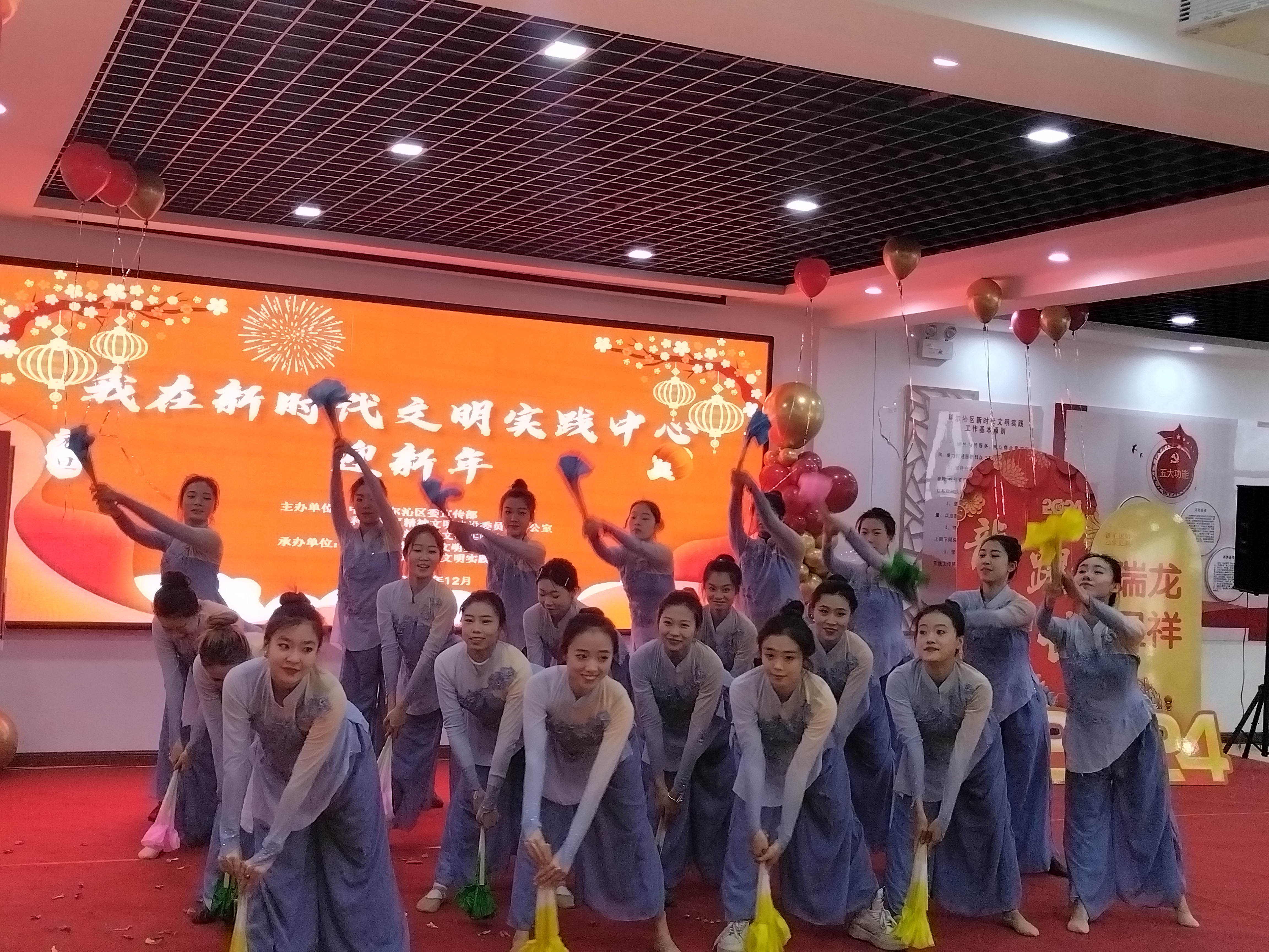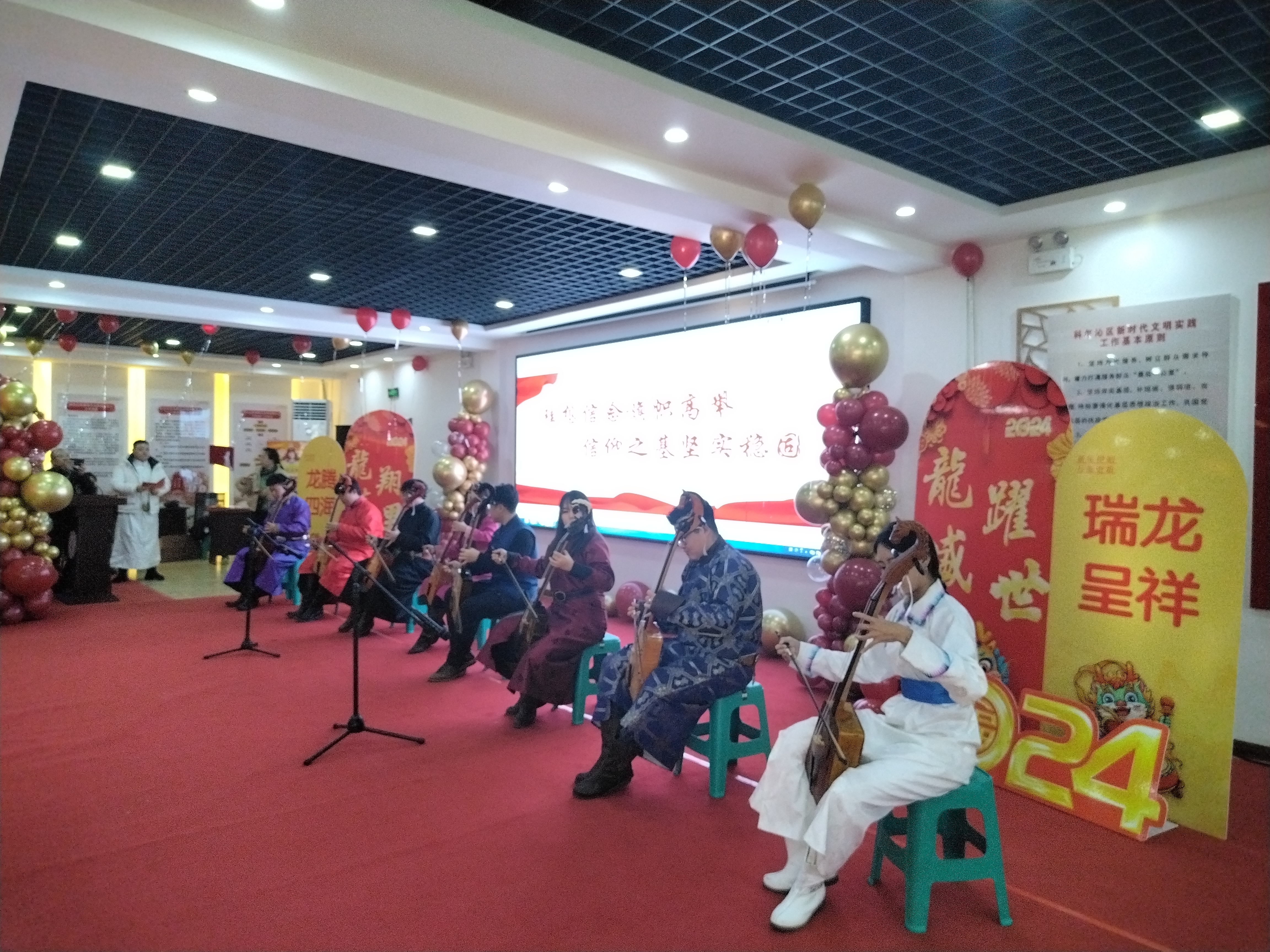 为深入学习贯彻党的二十大精神,满足居民的精神文化需求,营造文明、和谐的社会氛围。2023年12月27日上午,由中共科尔沁区明仁街道党工委、科尔沁区明仁街道办事处主办,科尔沁区文化和旅游局、通辽市第一中学承办,内蒙古民族大学乌兰牧骑、科尔沁区文化馆、科尔沁区新时代文明实践中心、科尔沁区明仁街道露天社区协办的明仁街道“民族团结心向党 踔厉奋进新征程”主题新年文艺汇演在通辽市科尔沁区新时代文明实践服务中心举办。