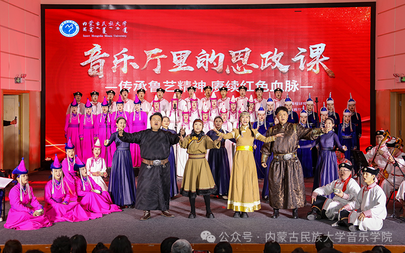 课程结束后,现场师生纷纷表示,通过聆听“音乐厅里的思政课”,对诞生在这片土地上的经典红色歌剧有了更深刻地认识,从冀察热辽鲁艺的发展历程中,感受到了浓浓的历史脉动和家国情怀,在红色文化中铸牢中华民族共同体意识。“音乐厅里的思政课”依托内蒙古民族大学铸牢中华民族共同体意识研究基地(自治区四部委)、内蒙古民族大学中华优秀文化传承基地(教育厅)、内蒙古民族大学非物质文化遗产研究中心(教育厅),由内蒙古民族大学冀察热辽鲁艺教育模式与传承创新团队和铸牢中华民族共同体意识高校公共艺术课程研究团队共同打造。内蒙古民族大学一直以来认真落实习近平总书记提出的“思想政治理论课是落实立德树人根本任务的关键课程”重要指示精神,积极推动思政课改革创新,全力打造学校北疆文化品牌,为全方位建设模范自治区贡献民大力量。