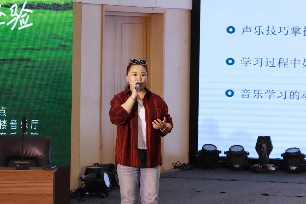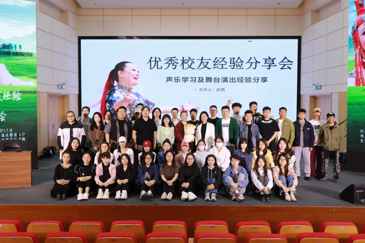 2024年5月15日17时,内蒙古民族大学逸夫楼音乐厅,2003届校友赤峰歌舞剧院青年声乐演员赵茜举办了一场经验分享会,吸引了众多学弟学妹,参加分享会的还有内蒙古民族大学音乐学院院长赵伟晶教授。分享会由声乐教研室主任郑开元副教授主持。