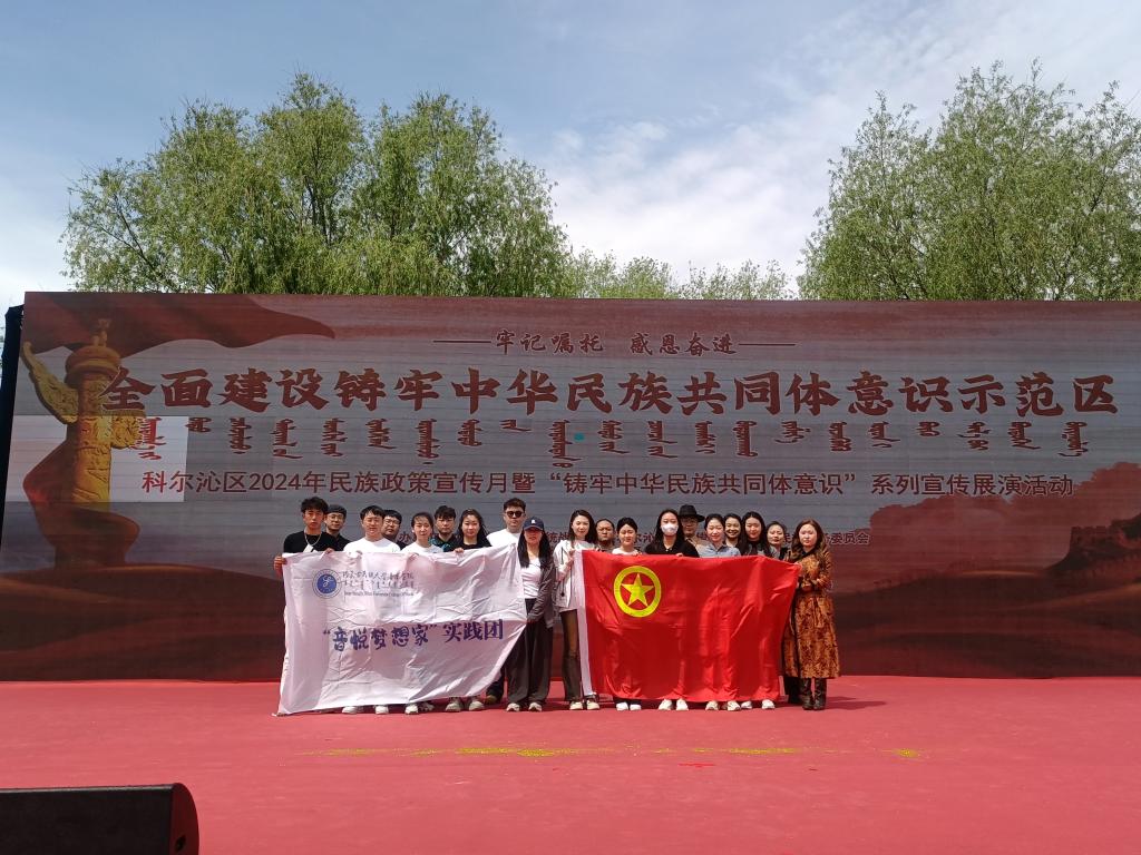 2024年5月13日上午,音乐学院“音悦梦想家”实践团到科尔沁区铸牢中华民族共同体意识研学基地实践参观,音乐学院团总支负责人陈琢带队。通过研学基地参观,文艺汇演促交流等方式,让各族青年学子广交朋友、开阔视野、增长本领、凝心聚魂,以实际行动为铸牢中华民族共同体意识、促进民族团结进步贡献力量。