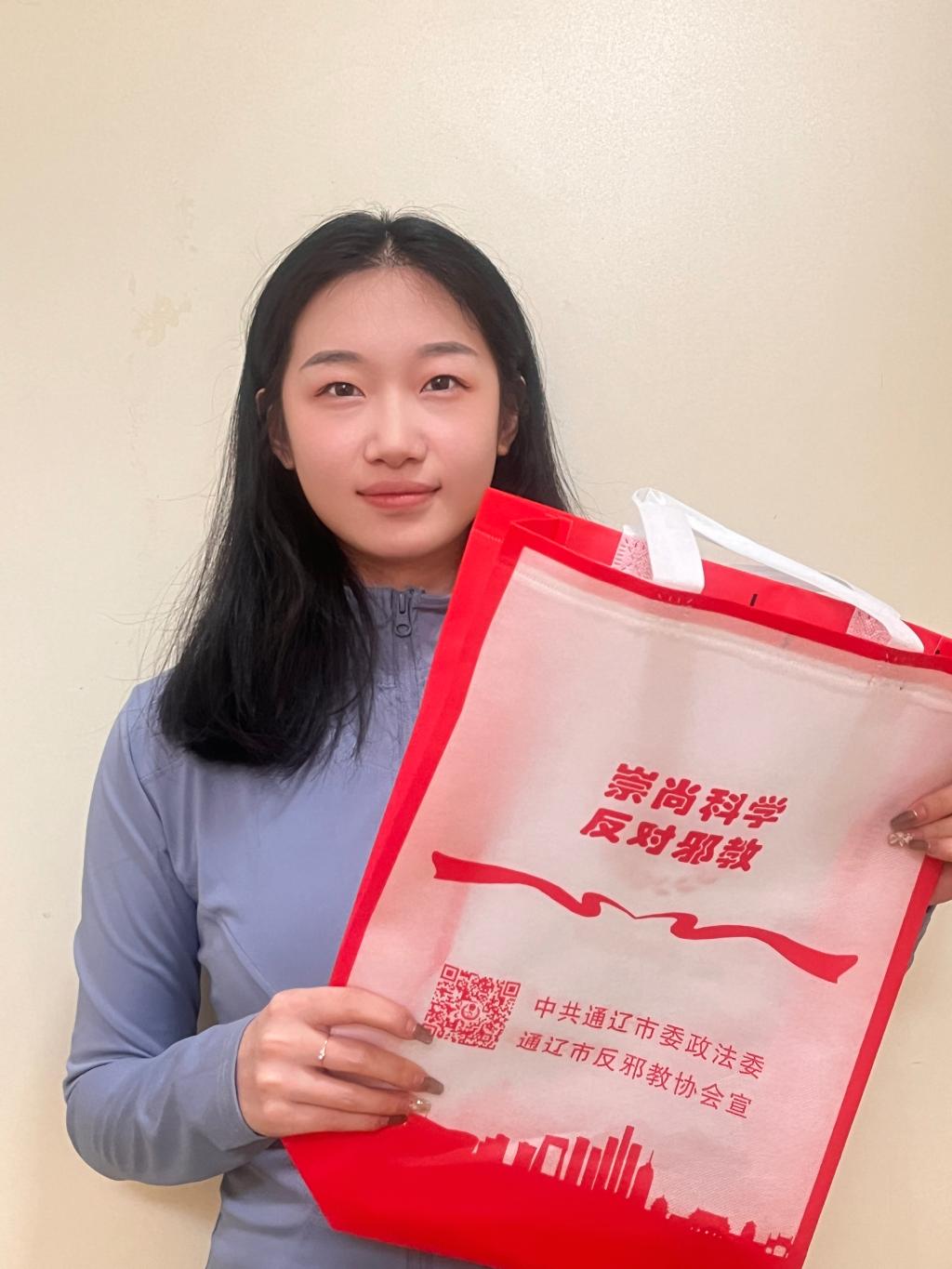 实践团成员参加了科尔沁区2024年民族政策宣传月暨“铸牢中华民族共同体意识”系列宣传展演活动的文艺演出,期间还帮助现场工作人员向群众发放宣传单页、“崇尚科学 反对邪教”手提袋等,详细为群众讲解了“什么是邪教”“邪教的危害”“邪教的主要种类”“邪教与宗教的区别”“邪教常用的骗人手段”等内容,引导居民群众用科学知识、科学精神、科学方法来指导我们的生活。