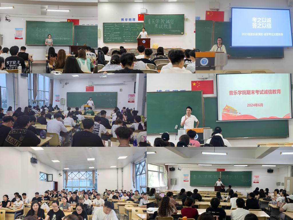 为进一步弘扬诚信精神,营造公平、公正、诚信的考试环境,近日,音乐学院积极响应学校号召,全面开展了以“诚信考试”为主题的系列班会活动。此次活动覆盖了学院所有班级,旨在通过深入教育引导,增强同学们的诚信意识,确保考试工作的顺利进行。
