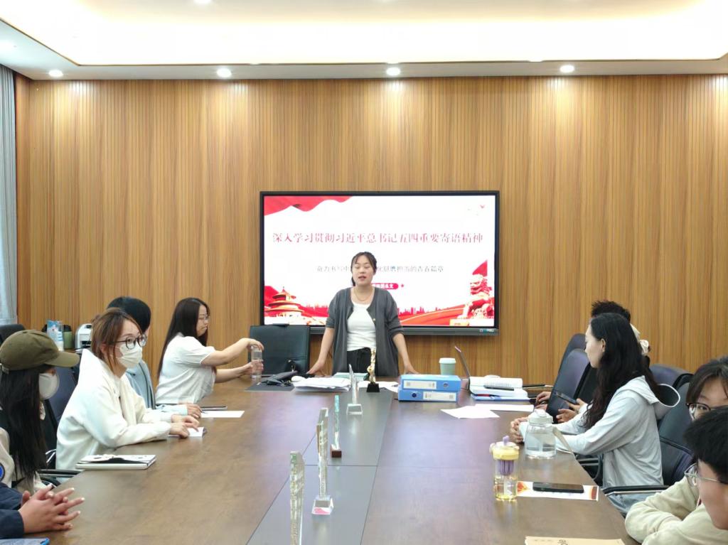 在青春洋溢的五月,为纪念五四青年节,弘扬五四精神,音乐学院于5月5日在二楼会议室举办了一场以“五四寄语精神”为主题的宣讲活动。此次活动由音乐学院辅导员陈琢作为主讲,为2021级学生带来了一场生动而深刻的宣讲。