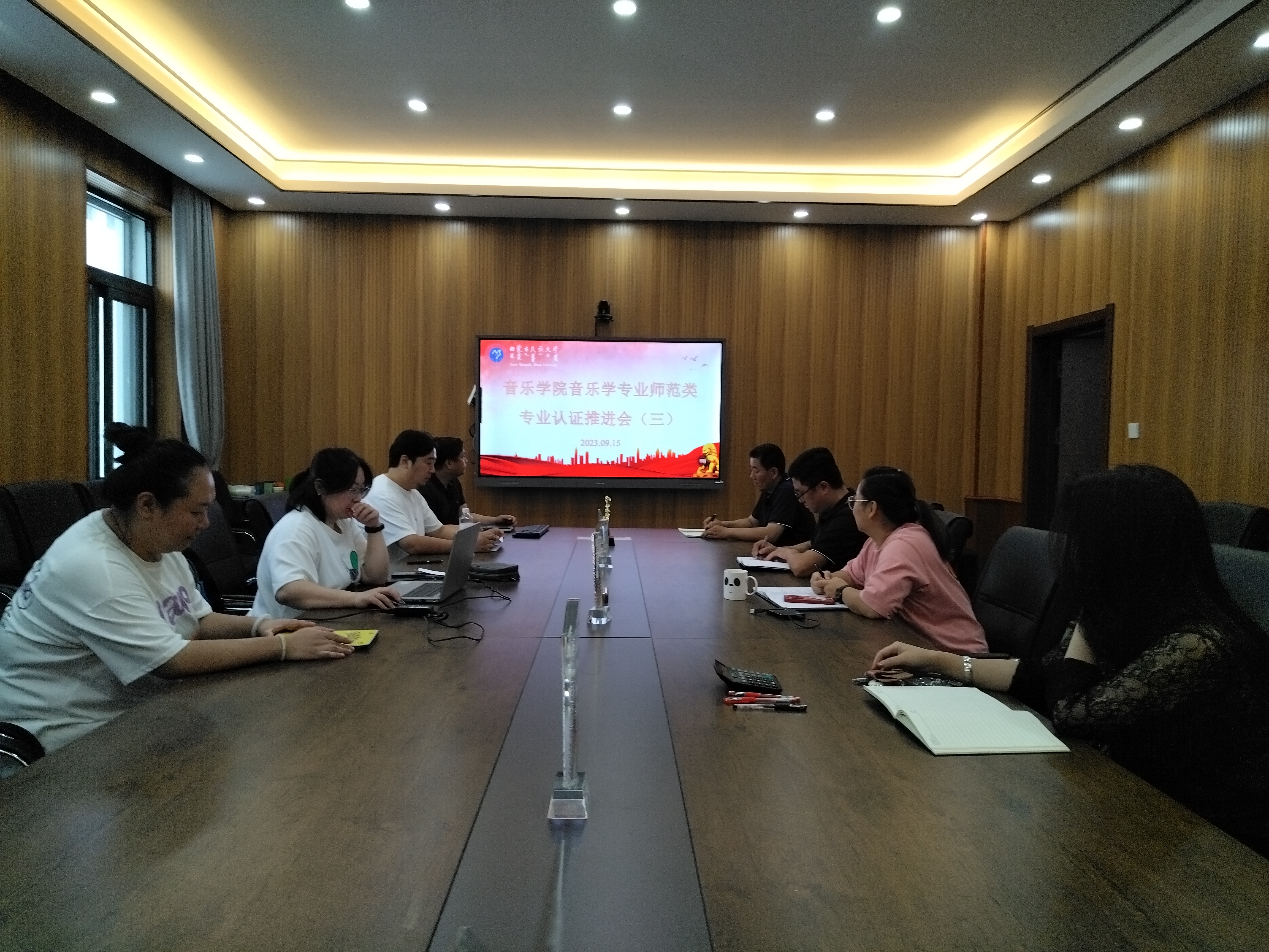 推进会上,耿学刚、敖日格乐两位院长分析了学院音乐学专业现状,对学院面临的申报工作进行了详细的分析,要求所有教师对照撰写指南,认真做好本次认证申请的各项准备工作,认真打磨本次师范类认证申请书,精心准备各项支撑材料。