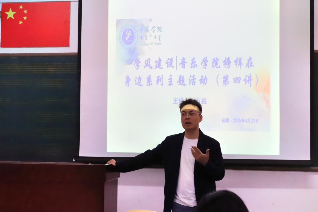 4月23日下午15:00,音乐学院举办榜样在身边系列主题活动(第四期),此次活动在逸夫楼302教室举行。