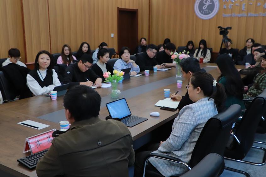 音乐学院赵伟晶院长进行了总结讲话。她表示,作为中华民族的一员,我们不仅要了解传统音乐文化,更要将其与学校教育紧密相连,让民族音乐之花在科尔沁草原上绚丽绽放。赵院长的讲话进一步强化了讲座的主题,也为音乐学院未来的教学工作指明了方向。